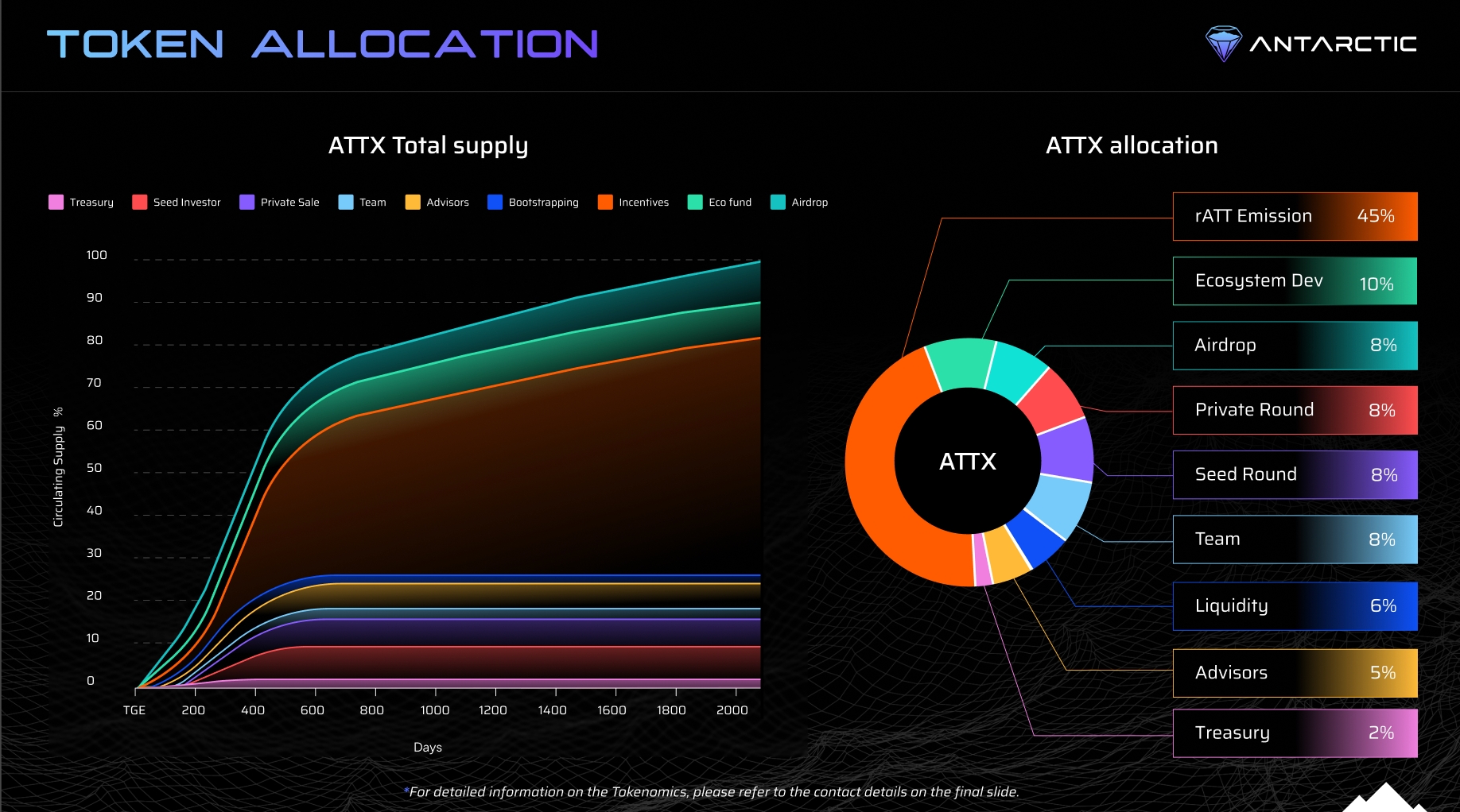 The distribution of AX tokens (ATTX) is based on the principles of fairness and transparency as inline with our company vision. More than 51% majority of the token will be in the hands of users by the time the token fully Vests.